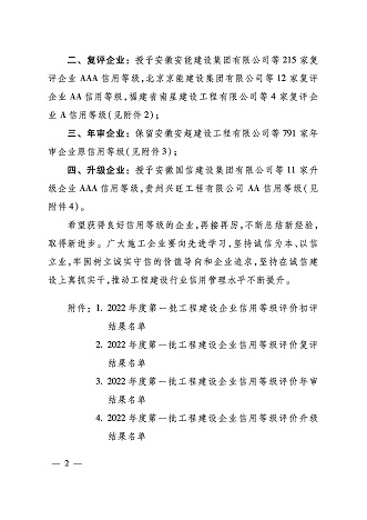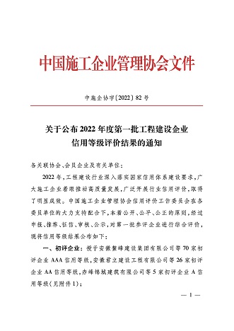 再次荣获施工企业最高信用评级“AAA级企业信用证书”。这是对开云网页版-开云(中国)