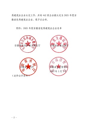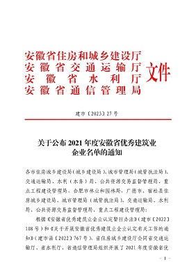 近日,安徽省住房和城乡建设厅公布了“2021年度安徽省优秀建筑业企业”名单,开云网页版-开云(中国)