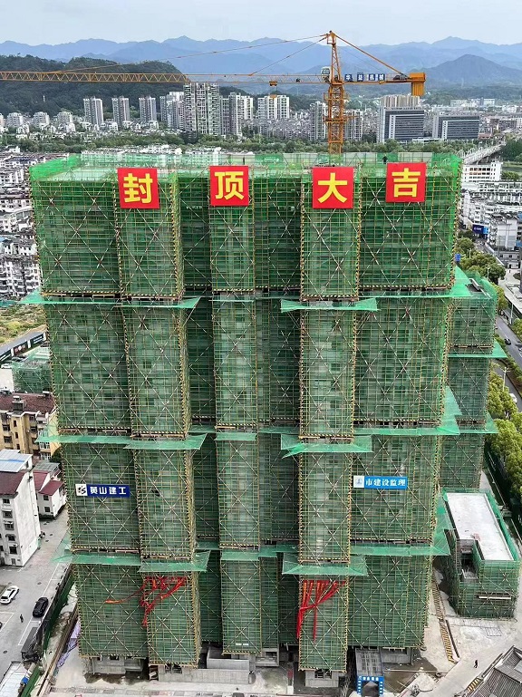 中标承建的文澜轩工程主体结构举行封顶仪式,黄山市建设投资集团有限公司、黄山市富徽城市综合开发有限公司相关领导及开云网页版-开云(中国)