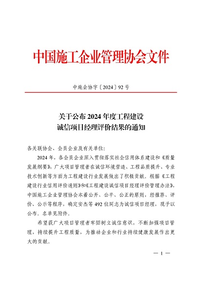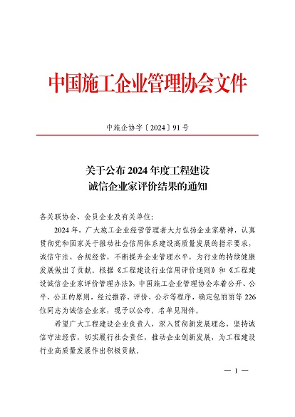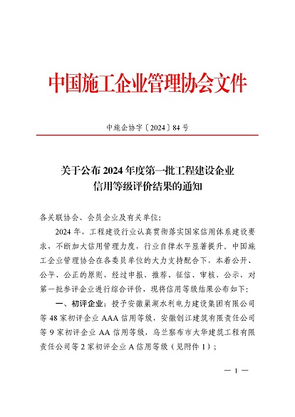 近日,中国施工企业管理协会公布了2024年度第一批工程建设企业信用等级评价结果的通知、工程建设诚信企业家评价结果、工程建设诚信项目经理名单。开云网页版-开云(中国) 顺利通过AAA级信用企业的年审,继续保持AAA信用等级的殊荣。开云网页版-开云(中国) 总经理叶金发获评诚信企业家,项目经理毕星豪获评诚信项目经理。此次荣誉是对开云网页版-开云(中国) 在工程建设领域的综合实力和诚信经营的高度认可。