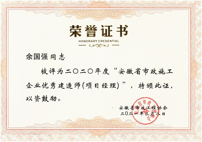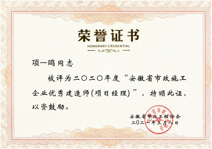 2020年度安徽省优秀市政施工企业